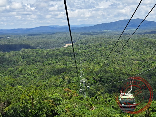 ‘s Nachts klinken er activiteiten vanaf de straat. Het lijkt of men in beton aan het zagen is. Waarschijnlijk probeert men het elektriciteitsprobleem op te lossen. Er is nog altijd geen stroom wanneer ik wakker word. Ook de airconditioner werkte niet vannacht. Het was warm in de kamer. Grappig genoeg doet het lampje van de koelkast het wel. Waarschijnlijk staat een aggregaat aan en staat de koelkast hierop geschakeld. In het donker neem ik een douche. Het water wordt redelijk warm. Om mij te scheren heb ik te weinig licht. Ik sla het over vandaag. Wanneer ik beneden kom, blijkt er voor de deur van het hotel een kabelbreuk te zijn. De receptioniste zegt dat dit komt door de recente overstromingen en verzakkingen. Het gehele blok zit zonder stroom. De verwachting is dat de stroom binnen enkele uren weer hersteld zal zijn. Hier wachten we niet op. We wandelen naar het nabijgelegen Hilton Downtree hotel. Hier worden we opgepikt voor een excursie naar de Skyrail naar Kuranda. Met de bus rijden we langs de luchthaven ten noorden van Cairns. Bij Smithfield worden we afgezet bij de kabelbaan. Een zevenenhalve kilometer lange kabelbaan over het oudste regenwoud van Australië. Onderweg zijn twee stops. Ik besluit op de heenweg op de 540 meter hoge top van de Red Peak uit te stappen.