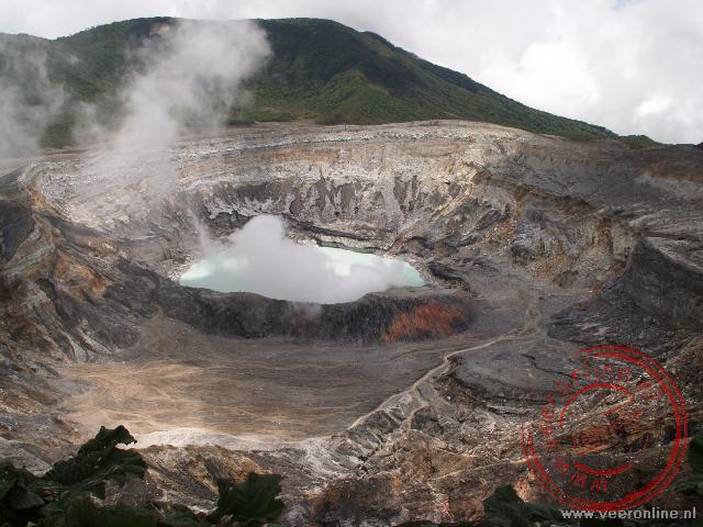 Allemaal leuke informatie om te horen. Bij een koffieplantage onderbreekt Steven zijn verhaal. Hier stappen we uit en bezoeken de plantage. Ook is hier uiteraard de gelegenheid om een kopje koffie te drinken. Steven geeft uitleg over de koffieplant en het koffieproces. Zo vertelt hij dat de bananenbomen bewust tussen de koffieplanten in staan. Ze gebruiken het overtollige regenwater en beschermen de koffie tegen de wind.Tegen half elf rijden we het Poás Volcano National Park binnen. Het is inmiddels bewolkt geworden en Steven in minder zeker of we het kratermeer gaan zien. Vanaf het parkeerterrein wandelen we in tien minuten naar de kraterrand van de hoofdkrater op 2.574 meter hoogte. Het turkooise blauwe water is prachtig te zien. Het water heeft een constante temperatuur van ruim 80 graden. De bewolking is net even opgetrokken. Dit blijkt tijdelijk te zien. Na vijf minuten is het zicht volledig onttrokken door de bewolking. We zijn net op tijd. De aandacht wordt verlegd naar de vogeltjes. Met diverse telelenzen worden de vogeltjes gezocht. Het valt nog niet mee deze beestjes scherp op de foto te krijgen.
