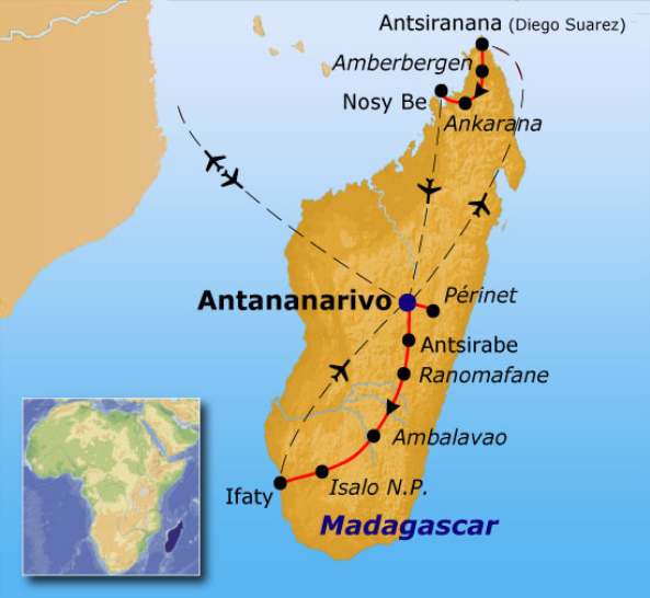Home > Madagascar > Madagascar het eiland van de Maki's > Routekaartje