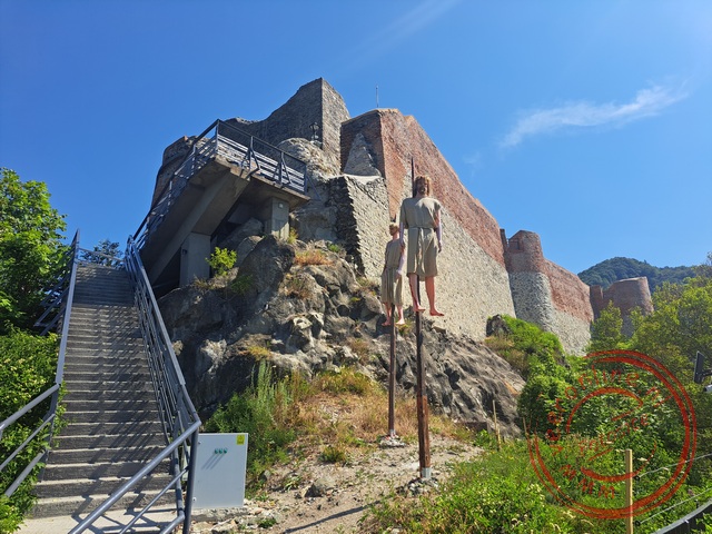 Via this route, he could escape in the event of a possible Russian invasion. Today, the Transfagarasan highway is one of the most beautiful mountain roads in Europe and popular with tourists. After a few kilometers, we pass the sign marking the start of the mountain pass. Fortunately, it also states that the pass is open. In the winter months, the pass is closed. It only reopens on July 1. Our first stop is at Poenari Castle. The ruins can be reached by a staircase with no less than 1,480 steps. The stone staircase is surrounded by forest. Along the stairs runs an electric fence. This is to keep wild animals away. This is especially important for the brown bears in this area. Loud music also plays from speakers everywhere. I suspect this is also meant to keep bears at a distance. I steadily climb upward. After half an hour, I reach the castle ruins.