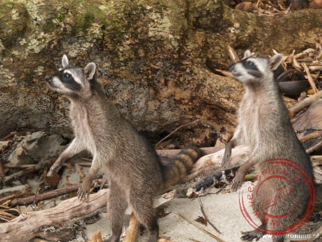 Bij het strand ligt er één op vier meter hoogte. De wasberen struinen over het strand. Eén wasbeer steekt zijn snuit in de rugzak van zonnende toeristen. Voordat zij van hun handdoek omhoog kunnen komen, heeft hij de tas al open en rent weg met een sandwich. Dit tot grote hilariteit van de strandbezoekers. Op het strand ligt ook een grote zwarte leguaan. Argwanend bekijkt hij iedereen die van dichtbij een foto van hem wil maken. Toch ziet hij geen reden om zijn riante plekje op de boomstronk op te geven. Wij lopen ondertussen het bos in via de Kathedraal wandeling. Deze wandeling loopt over het kleine schiereiland en bevat de nodige treden op en neer. Het pad is behoorlijk modderig en het is goed kijken waar je de schoenen neerzet. Vooral in de afdaling. Net als we op de top zijn begint het zachtjes te regenen. Met de poncho's aan starten we de afdaling. Gelukkig duurt het buitje niet al te lang. Terug op het strand, neem ik een duik in het oceaanwater.