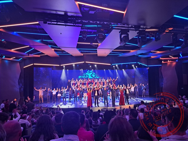 Verenigde Arabische Emiraten - Het cruiseschip ligt aan de pier bij het strand