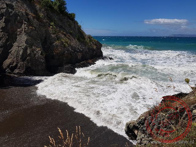 Het strand van Hahei wordt wel het mooiste strand van Nieuw Zeeland genoemd. De baai ligt ingeklemd tussen rotsen. Het goud gele zand ligt prachtig onder de fel blauwe hemel. Voor de kust liggen enkele eilanden. Met recht is dit een prachtige locatie. Vanaf het strand volgen we het wandelpad naar de Cathedral Cove. Het pad loopt op en neer naar een van de meeste bekendste baaien van Nieuw Zeeland. Het laatste stukje van de wandeling daalt af met een trap. We staan op het strand. Links van ons ligt de Cathedral Cove. Een tien meter hoge boog in de rots, biedt doorgang naar een tweede baai. Het strand en enkele rotsen in zee steken hier mooi bij af.